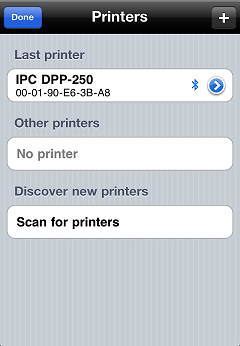3. If you have not paired a Bluetooth printer with your CPMobile device directly, tap Scan for printers to find local Bluetooth and IP printers.