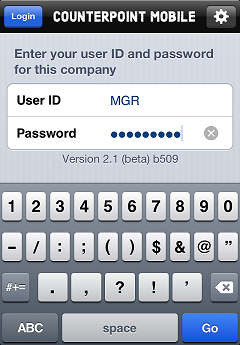 Enter your Counterpoint User ID and Password, and then tap Login to log in.