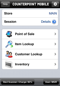 From the main menu, you can access Point of Sale, Item Lookup, and Customer Lookup functions,