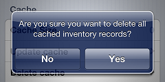 confirmation message to remove all inventory records, including grid cells and serial numbers, from your CPMobile device's cache.