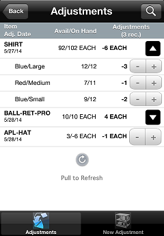 Adjustments screen, which displays all of the pending adjustments on your CPMobile device, and then make the necessary changes.