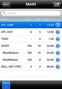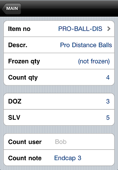 Tap the item for which you want to record count quantities, tap the appropriate