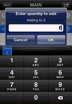 Enter quantity to add dialog, and then enter a quantity to add to the existing count value for the unit.