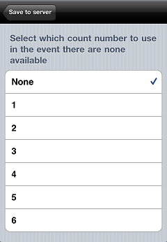 Count-qty field in Counterpoint (i.e., 1 through 6) to which exported count quantities will be appended, if none of them are empty, and then tap Save to server.