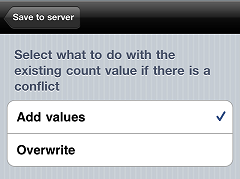 one of the following options to determine how to handle count quantities for items for which a Count-qty field is not available, and then tap Save to server.