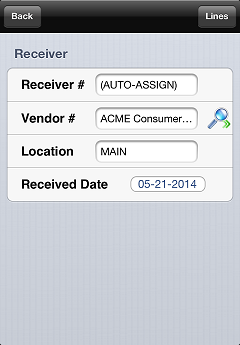 To edit a pending receiver, tap Pending Receivers on the Receivings screen, and then tap the receiver you want to edit on the