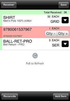 To export a pending receiver, tap Pending Receivers on the Receivings screen, select the receiver you want to export, and then tap the Save button.
