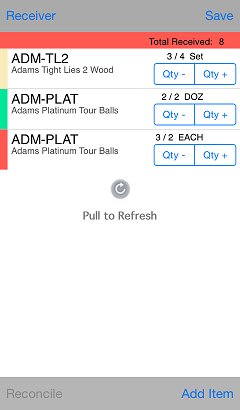 If you are using an iPhone or iPod Touch with a CPMobile sled or a Socket Mobile Barcode Scanner, you can scan an item's barcode to set the received quantity for an item on the receiver.