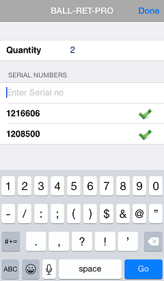 To specify the received quantity for a serialized item, tap the receiver line, Closedenter or scan the serial number(s) you are receiving, and then tap Done.