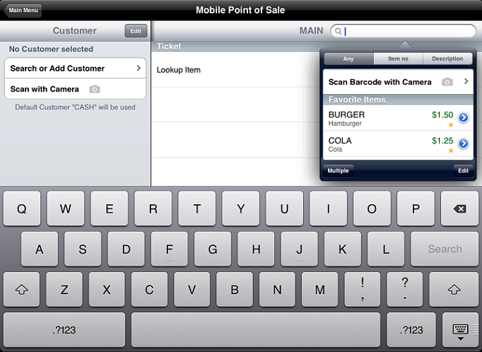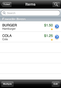If the item isn't found, you can tap the ticket line to add a new item record for the item.