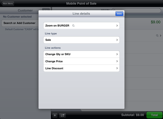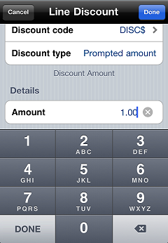 If your System Security Code includes the Allow discounts authorization, you can apply a single line-item discount to each Sale line on a ticket in CPMobile Point of Sale.