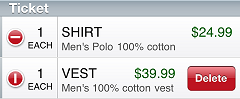On the Ticket screen, swipe the ticket line for the item, and then tap the Delete button.