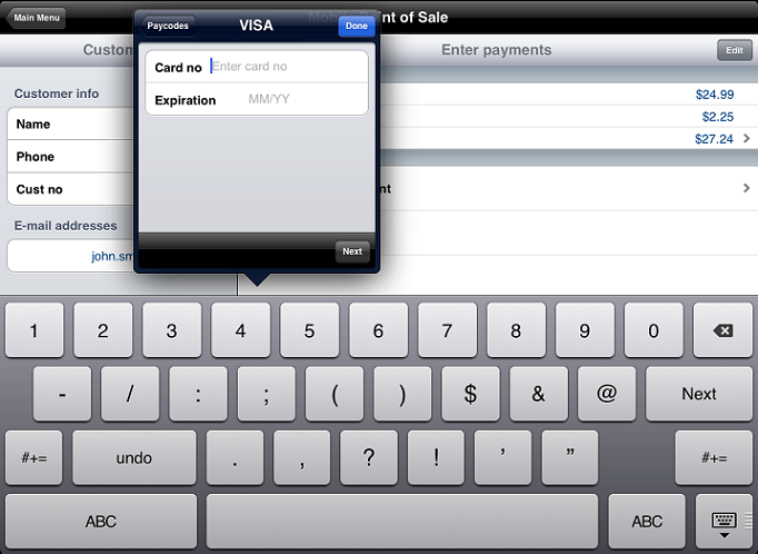 If you are not using a CPMobile sled or you are using CPMobile on an iPad, you can enter a credit card payment manually.