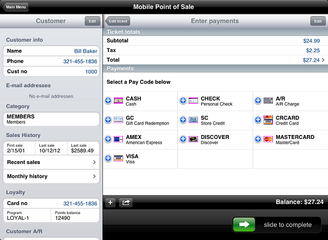 Tap the store credit the customer wants to redeem to return to the Enter Payments screen. The store credit payment is displayed in the
