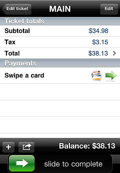 To total a ticket, tap the button.