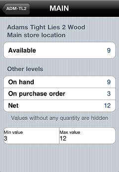 inventory details screen only displays quantities (e.g., On hand, Committed, On order, and so forth) with actual values. In addition, this screen now displays the Min and Max quantities for the item at the selected location.