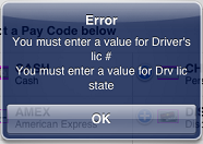 error message appears, alerting you of the required payment prompt(s).