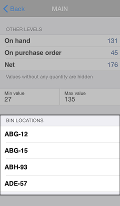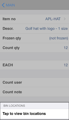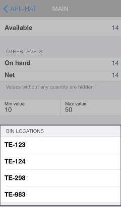 When you look up an item, you can view the bin locations assigned to that item by tapping a location in the