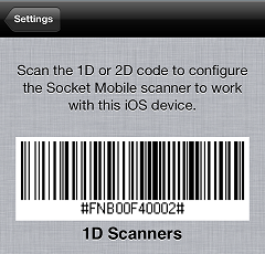 1D Scanners barcode to place the Socket Mobile CHS into iOS mode.
