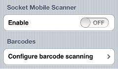 Socket Mobile Scanner section and tap the Enable on/off switch.